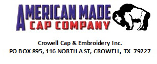 American Made Cap Co. has been in business at our North Texas plant since the 1970's. We are extremely proud of the fact that we are one of the last remaining 100% made in U.S.A. cap manufacturers. Our caps are made from the ground up, according to the customers specifications. We also operate a fully equipped embroidery studio with a digitizer on staff to serve our customers better. Whether your organization needs hats for promotion, or logos embroidered on uniforms. We are the one stop shop. "If you can envision it, we can make it."